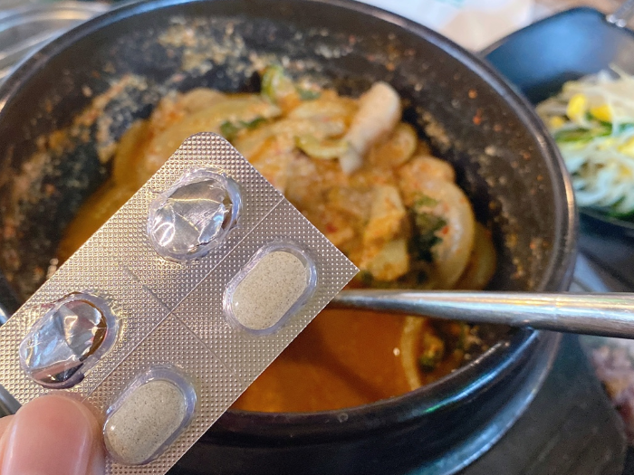 하루에 두 알씩 먹어야 하는데 회사 점심시간에 주로 나가서 먹고 플라스틱 용기에 있는 건 따로 가져가기가 어려울 것 같았어요.