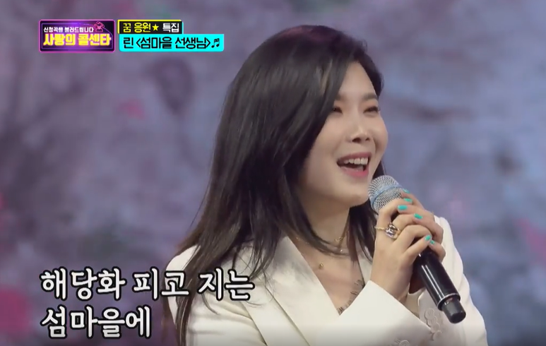 5월 28일 TV조선 사랑의 콜센터 꿈의 응원 특집에 가수 린이 등장해 영탁과 환상적인 듀엣 무대를 펼쳤습니다