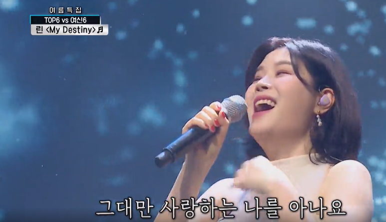 이곳에서 린 씨는 대표곡 “별에서 온 그대 ost “My Destiny”를 부르며 무대에 등장해 출연자들을 감동시켰습니다.