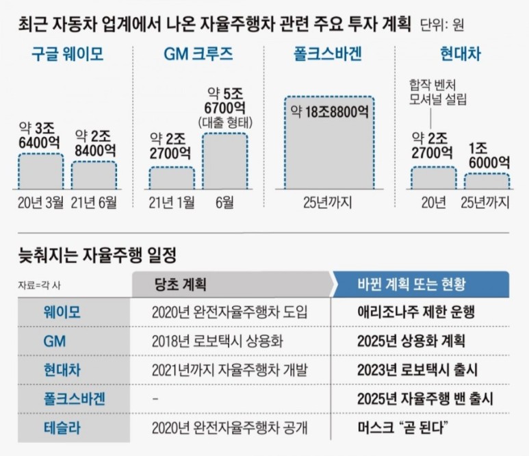 - 기타 GM크루즈는 현대차는 모셔널 합작 설립에만, 폴크스바겐은 2025년까지(투자계획.