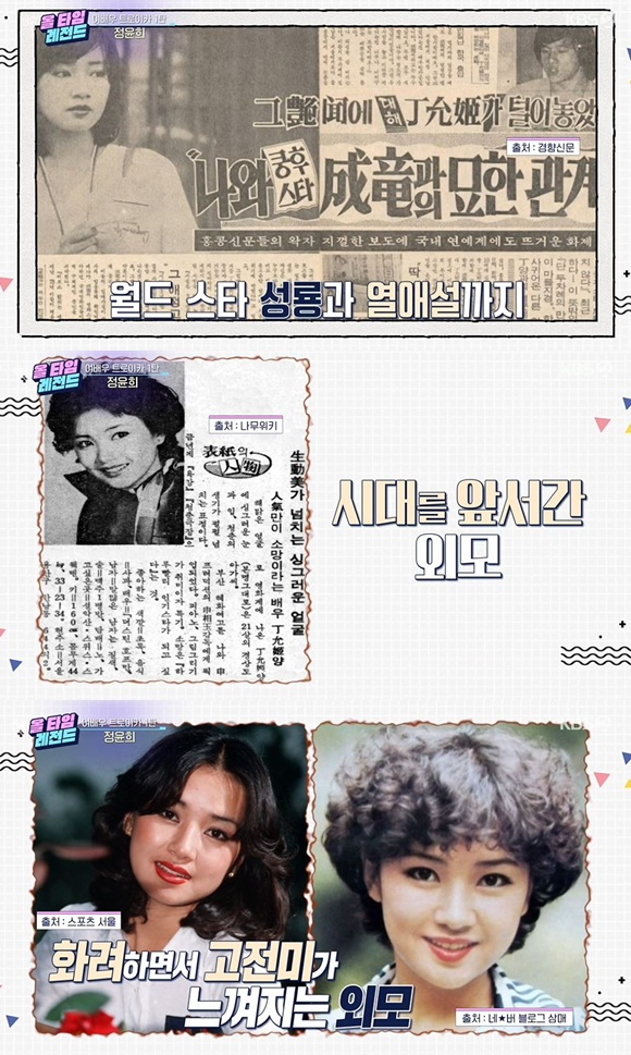 정윤희는 대한민국 남자들을 모두 설레게 했던 배우였고, 한 영화감독은 정윤희에 대해 어디에 카메라를 두어도 완벽하다고 증언했다. 또 화려하면서도 고전미가 느껴지는 미모를 지녔던 정윤희는 홍콩의 배우이자 세계적인 액션스타인 성룡과도 열애설이 나돌았다고 한다.