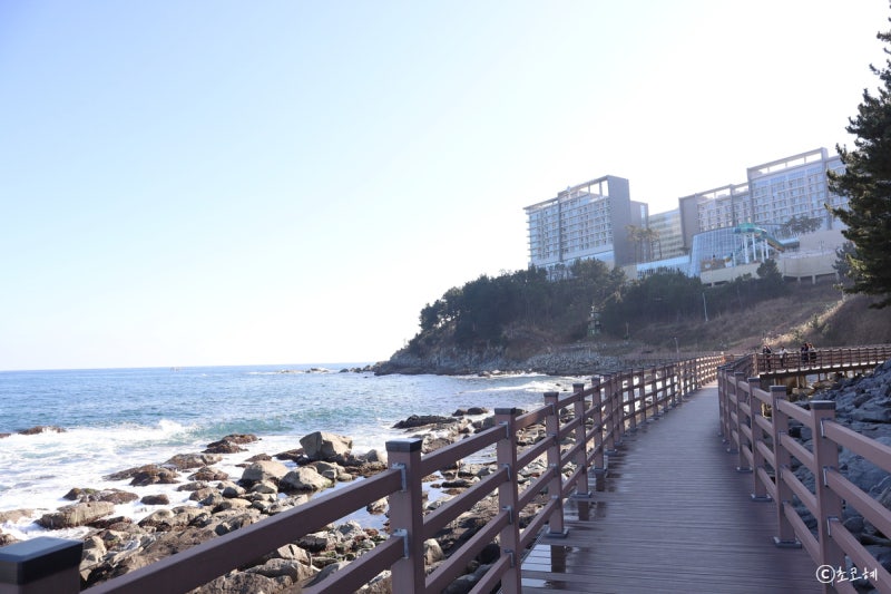 첫 번째로 소개할 건 강원도에 왔으니까 바다를 봐야 하지 않을까?! 싶어서 고른 외옹기 바다향기로.해변을 따라 산책할 수 있도록 데크가 잘 갖춰져 있습니다.