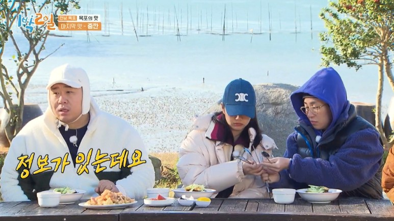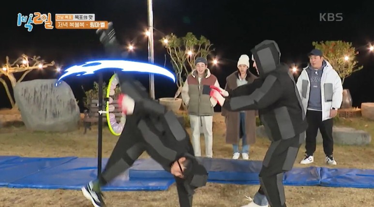 이날 방송에서는 ‘먹창’ 게스트 혜리와 ‘침 유발’ 음식을 함께 하는 ‘목포의 맛’ 특집의 마지막 이야기가 담겼습니다. 지난 주에 이어서, 사포 옷을 입고 풍선이 부착된 링을 통과해야 하는 저녁 복불복 미션이 연달아 이어졌어요. “자칭 ‘체조인’ 가수 김종민은 마지막 링에 걸려 넘어졌지만, 압도적인 실력을 자랑하는 가수 겸 작곡가 랍비 덕분에 최고점을 기록했습니다”
