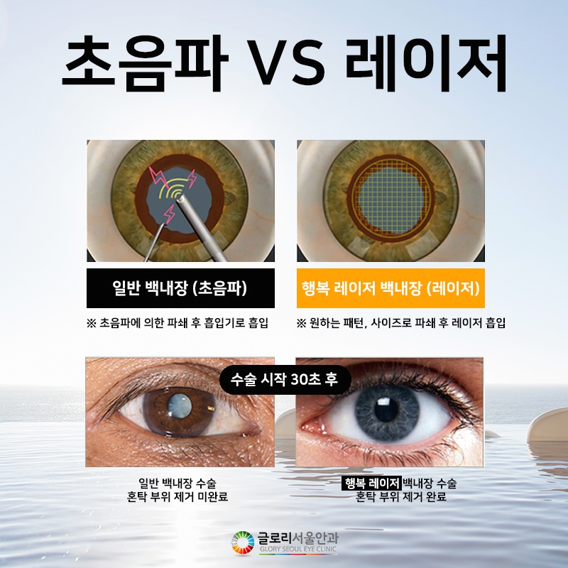 백내장의 개선 방법은 크게 나눠서 약물요법과 수술요법으로 나눌 수 있었습니다.아직 초기라면 안약이나 내복약을 사용하면 진행속도를 늦추는 효과를 기대할 수 있지만, 이러한 방법만으로는 이미 흐릿해진 수정체를 원래의 투명한 상태로 만드는 것은 불가능하기 때문에 완치를 위해서는 수술이 불가피했습니다.정해진 수술 시기는 없으나 직업이나 일상생활에 지장을 줄 정도로 시력이 나빠지거나 백내장으로 인하여 포도막염, 녹내장 등 합병증의 우려가 있는 경우 빠른 검사를 통하여 수술시기를 결정하는 것이 긍정적인 시력개선의 결과를 가져올 수 있습니다.현재 시행되고 있는 레이저 백내장 수술의 경우 안정적인 카탈리스 레이저 시스템을 기반으로 시행되고 있으나 과거와는 달리 성공률과 정확도, 재현성, 시력회복력 면에서 현저히 높은 결과를 얻을 수 있는 획기적인 수술방법으로 주목 받고 있습니다.