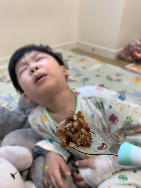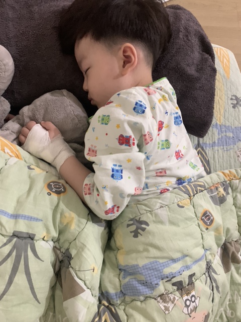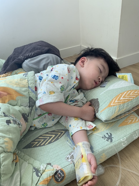4월 12일 일요일은 입원해서 점찍어 놓고 해열제 먹어도 병원에서도 열이 내리지 않는 간호사분들 수시로 들어가서 확인해 주셔서 걱정해서 주심몽은 입원 첫날 피곤해서 잠만 자고 있었습니다.