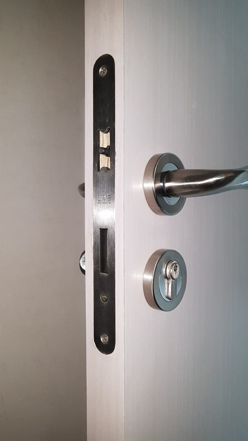 특이한 점은 가끔 아파트 분양 시 내부 전체 문을 모티즈락으로 설치한 아파트가 있다는 것입니다.화명동 대림타운도 방문해 보니 전체 문이 모티스로 되어 있습니다.보통 안방 문만 열쇠형으로 만들기 위해서 모티스를 많이 해놨는데 전체가 모티스 아파트는 많지 않아요. 어쨌든 고급 핸들이라서 좋은 거예요.분해해보니 역시 상태가 안좋네요.모티즈락은 사이즈가 수십가지는 있을 것 같아요.어쩌면 수백가지일지도..회사마다 다양한 사이즈가 나와 있기 때문에 같은 사이즈를 찾는 것은 쉬운 일이 아닙니다.다행히 저희가 보유한 제품과 사이즈가 비슷해서 잘 설치해드렸습니다.문고리 작동도 원활하게 되네요!!