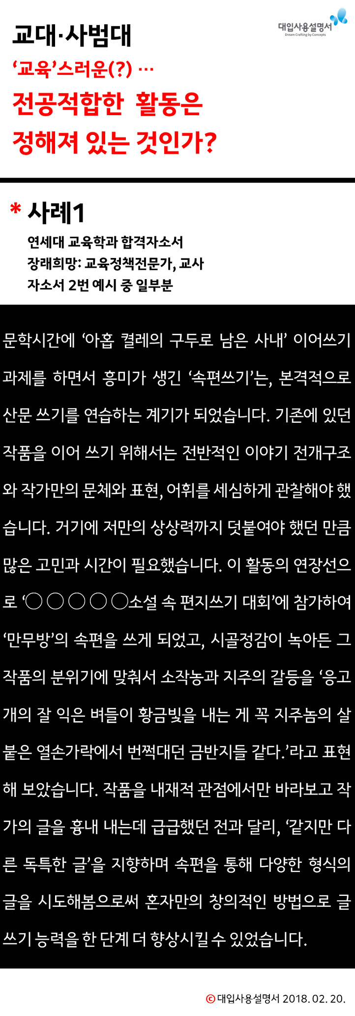 교대 자기소개서/의대 자기소개서/대입 자기소개서 컨설팅 문의