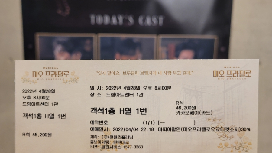 김태형,선영,김지언 / 드림아트센터 1관 1층 H열 [뮤지컬] 미오프라텔로 : 22.04.28 자스25 /