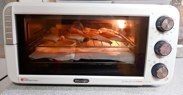 일식집에서 나오는 오븐구이 꽁치처럼 하고 싶어서 머리까지 그냥 넣을까 했는데 길이가 나오는 관계로…굵은 소금까지 앞뒤로 뿌리면 그럴듯하다.200도 컴팩션 기능으로 예열한 오븐에서 10분 후 10분 후뜨거워도 참으라고 바로 구출해 줄 테니까!10분 지나서 문을 열어보니까 이 냄새, 그리고 비주얼… 칼집 낸 데가 살짝 열리는 게 정말 맛있어 보인다.뒷면까지 굽다가 살짝 맛을 보면 약간 싱거워 소금을 추가로 뿌린 뒤 앞뒤로 2~3분씩 더한다.기름이 자꾸 나와서 소금을 녹여서 그게 좀 간이 떨어져.아, 아침에 나와.짠맛이 나는 것도 있지만, 하나 따서 밥 위에 올리면 맛있다고 입을 크게 벌린다.오븐에 구우면 집 안에 연기도 안 퍼지고 좋네.오븐 잘 지내?(마카롱 구워야 하는데…) 설마 꽁치마카롱만드는건 아니겠지?) #꽁치구이 #일식집꽁치구이 #꽁치오븐구이 #꽁치손질 #꽁치밥도둑 #구수한꽁치구이