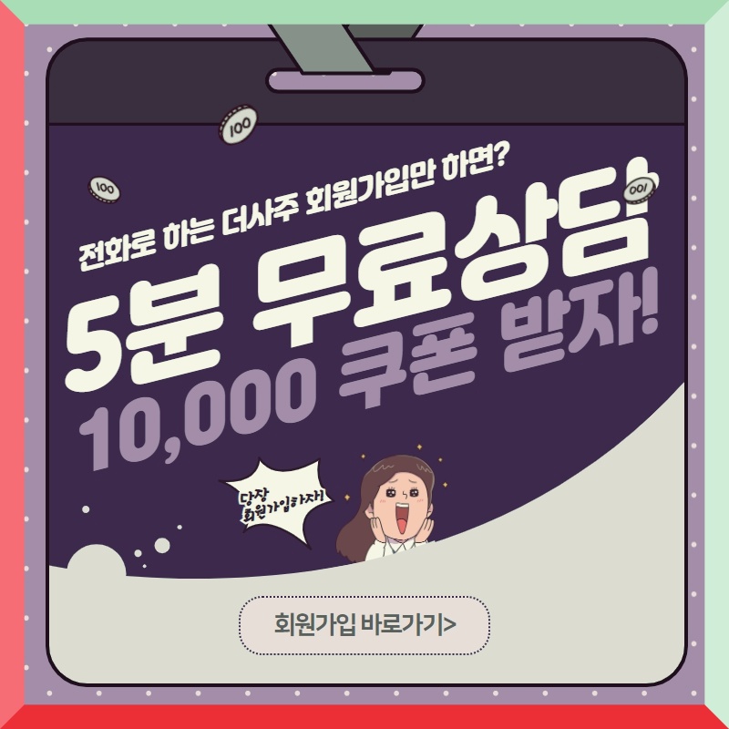 지금 전화하고 있는 더사주에 회원가입하시면 5분 무료상담이 가능한 1만원 쿠폰을 지급해드립니다~! 무료상담으로 버스를 놓치는 꿈의 해몽은 물론 다양한 사주상담이 가능하니 지금 바로 회원가입해보세요! (지금 해당 게시물에 댓글을 달아주시는 분들께는 추가로 무료쿠폰을 지급하고 있습니다.선착순으로 이용하오니 마감 전 꼭 수령해주세요 :>)