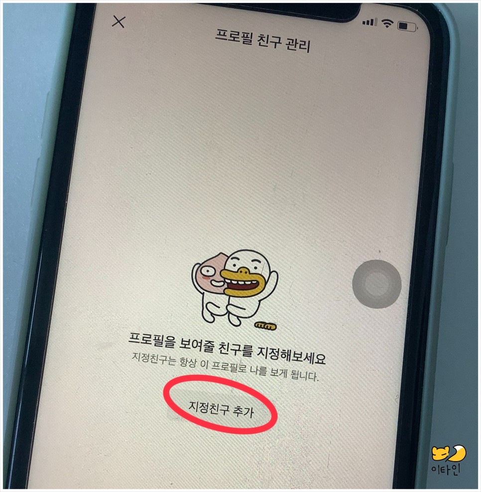 5. ‘프로필 친구관리’ 창으로 이동하였습니다.”지정 친구 추가” 를 선택합니다.