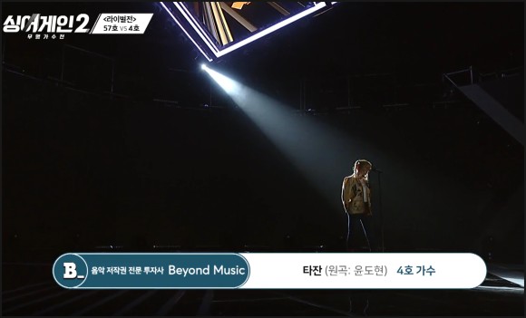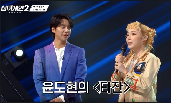 또 57호 가수와 대결하는 4호 가수 선곡은 이번에는 심사위원석에 있는 윤도현의 타잔을 부릅니다.