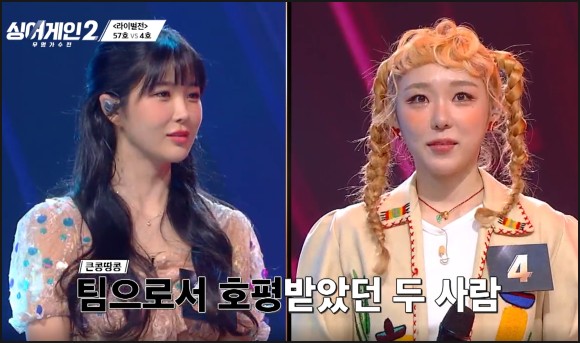 첫 번째 라이벌전 대결을 펼칠 가수는 2라운드에서 큰 콩땅콩 같은 팀이었던 4호가수, 그리고 57호가수 3라운드에서 이제 팀이 아닌 라이벌로 대결합니다.