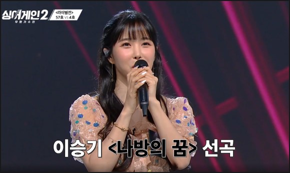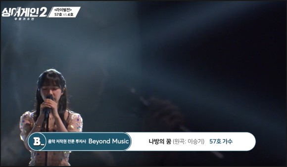 먼저 57호 가수의 노래를 부를 때는 곡을 보고 MC 이승기를 좋아하는데, 원곡자 이승기의 ‘나방의 꿈’ 57호가 선곡했습니다.
