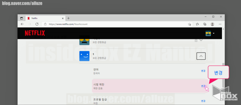 넷플릭스 프로필에 연령시청등급, 연령제한을 설정하는 방법