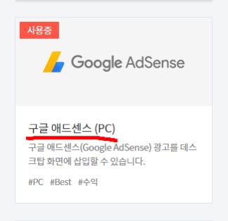그걸 누르면 여러 가지가 나오는데 저희가 필요한 건 광고 승인을 받은 애드센스.
