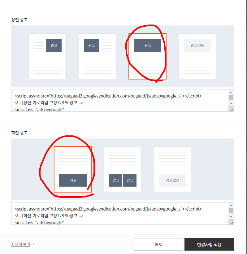 나는 몇 가지 유형을 선택할 수 있지만 일단 잘 모르기 때문에 상단 옆에 긴 광고를 넣을 것이다