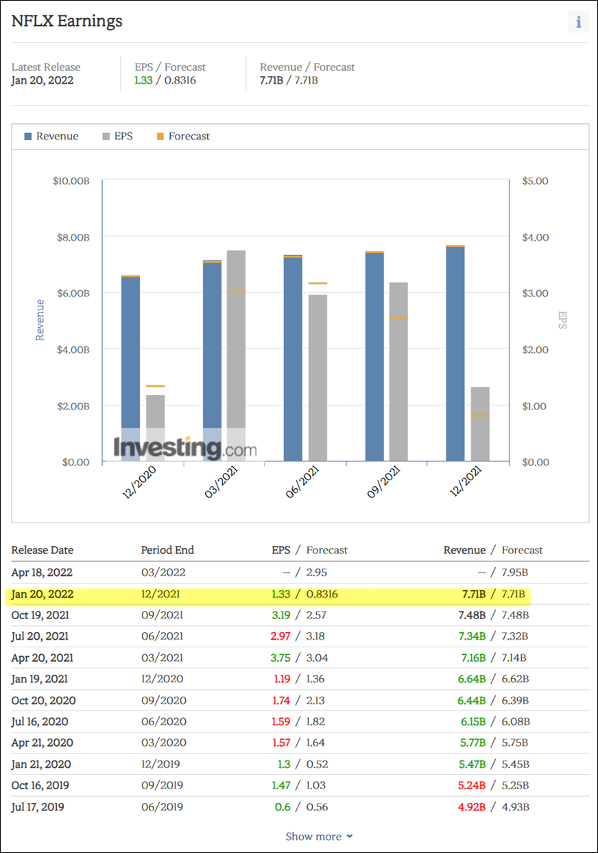 넷플릭스 2021년 4분기 실적 -매출 : ())-EPS:ᅦᆺᆯᆯᆯ