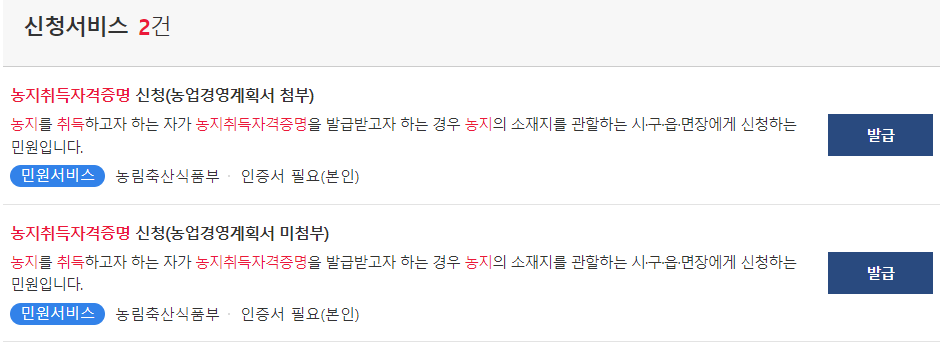 따라서 농지를 취득할 때 농지취득증명이 가능한지를 먼저 확인해야 합니다. 농지 취득 증명을 발급받기 위한 조건에 대해 먼저 알아봅시다. 온라인 서류 발급 시스템이 발달하기 전에는 해당 지역 내 유관기관에 방문해 신청해야 했지만 현재는 정부24를 통해서도 신청이 가능한 상황입니다.