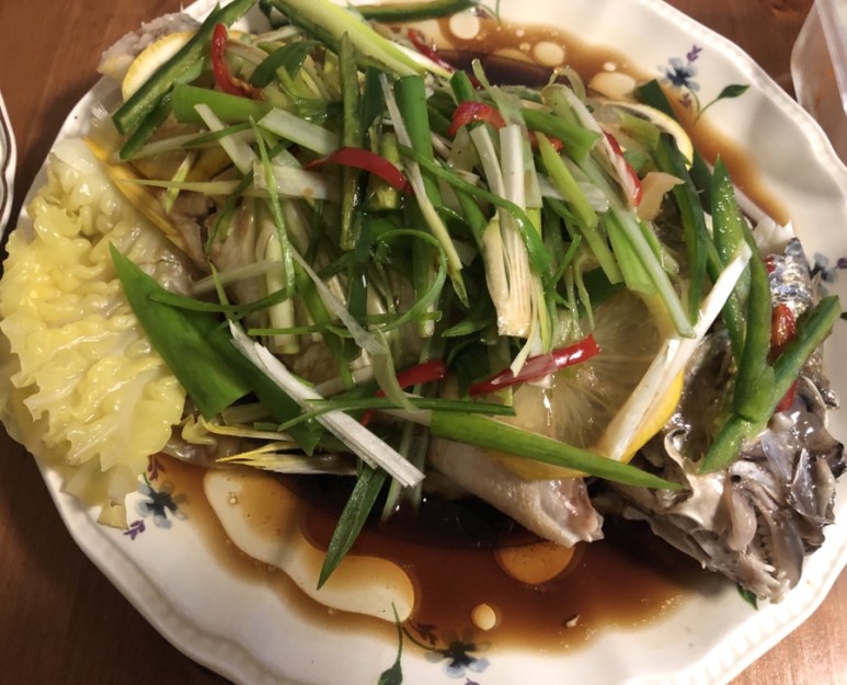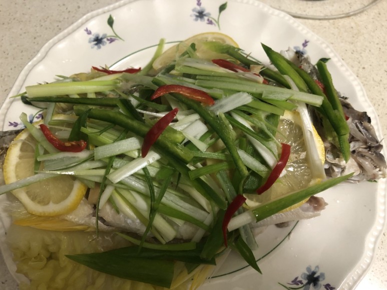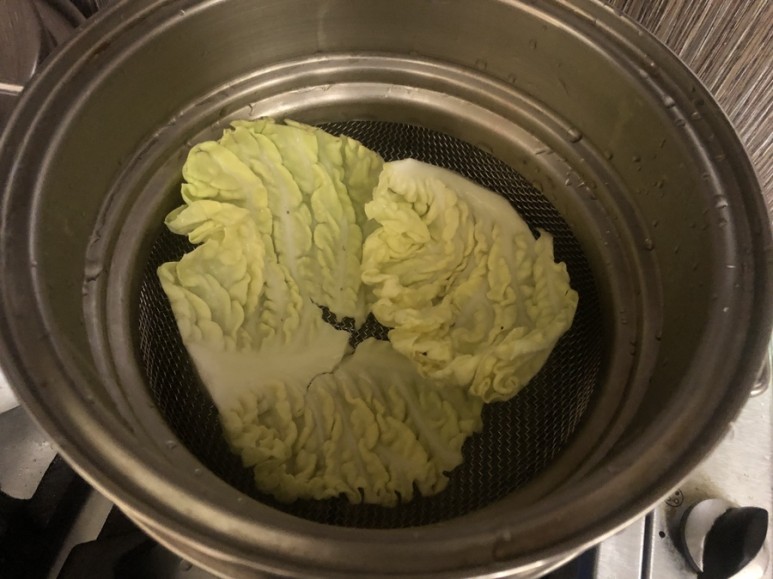 찜기에 생선 20분 쪄줘요. 찜통에 붙을까봐 양배추를 깔아줬어요 이거 꿀팁이에요