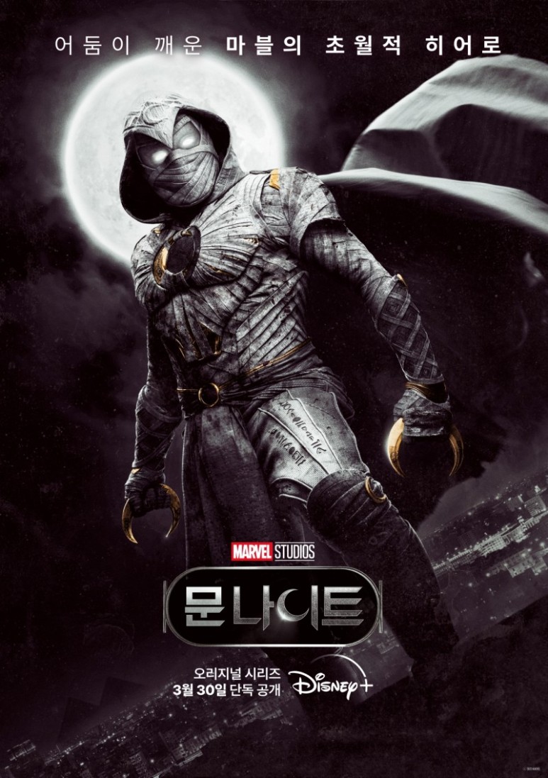 네, 마지막 작품은 얼마 전 맛보기로 마블의 새로운 히어로에 대해 쓴 ‘문나이트’에요. 오스카 아이작과 에단 호크의 캐스팅에 벌써부터 마음이 설레는 작품입니다. 여기에 기존 마블 영화나 시리즈에서 볼 수 없었던 혼돈과 잔혹함이 묻어나는 무자비한 액션 시리즈가 될 것이라는 케빈 파이의 말 때문에도 기대감이 커지고 있는 것 같습니다. 특히 예고편을 씹어먹는 오스카 아이삭 신에, 아니 오스카 아이삭이 이렇게 매력적이었나 싶었죠. 마블민국이라는말처럼마블사랑이강렬한대한민국이니까요. 아무래도 이 작품 기대하시는 분들이 많을 것 같아요. 마블의 새로운 시리즈 ‘문나이트’는 역시 디즈니 플러스 오리지널로 3월 30일에 개봉한다고 합니다.