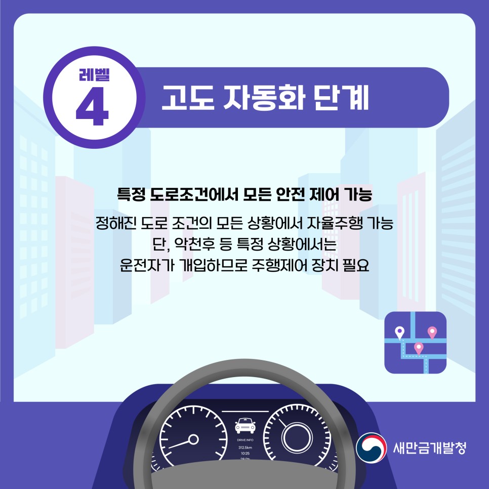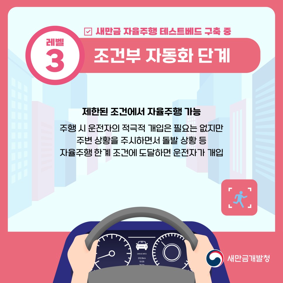 자동운전 기능 작동 중에는 운전자 개입 불필요 레벨 3~레벨 5
