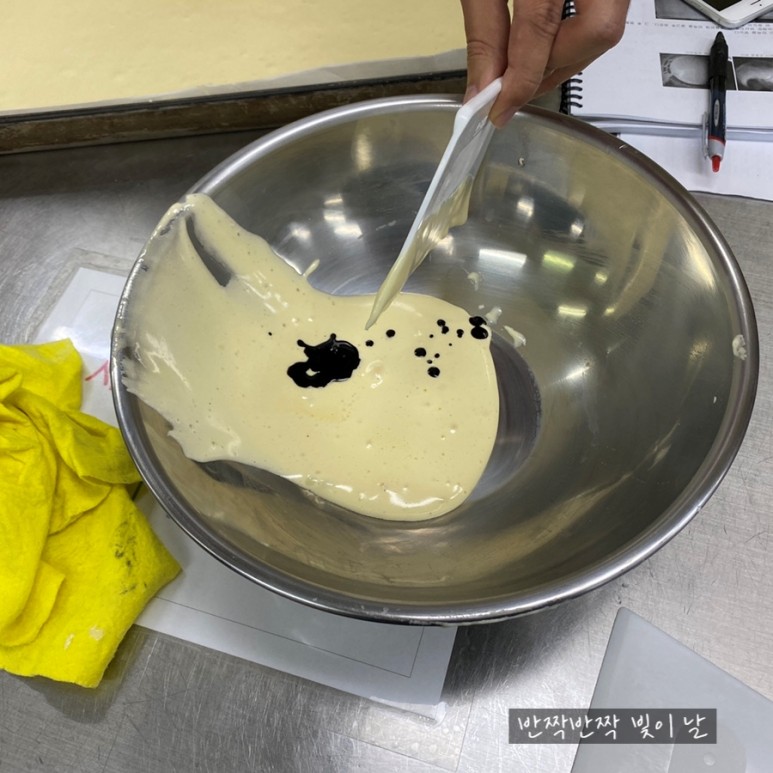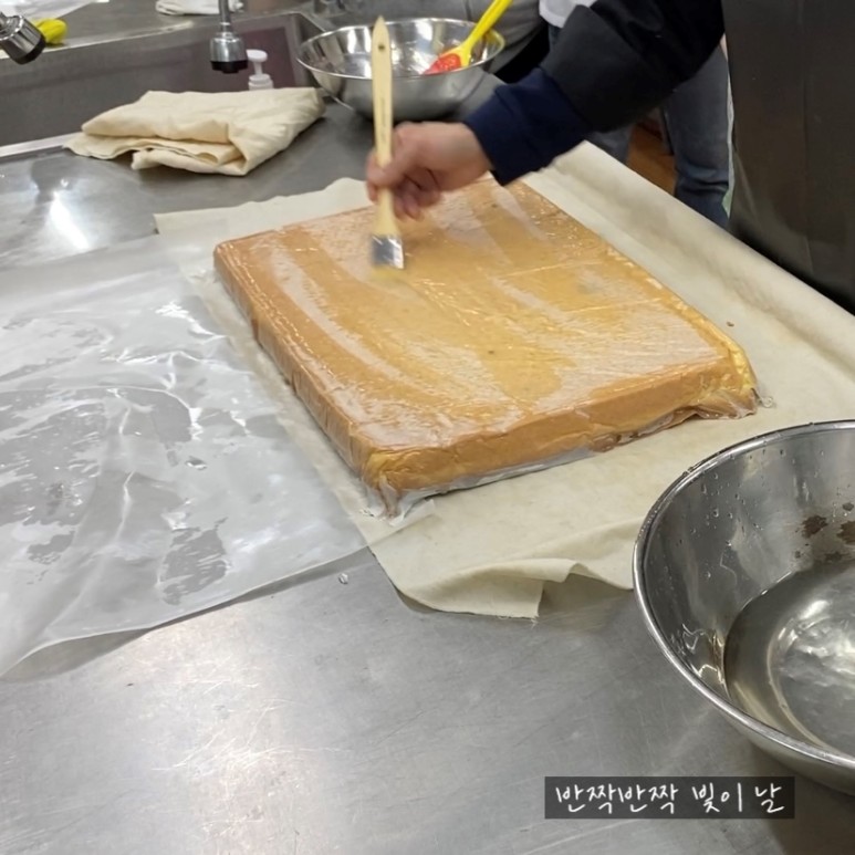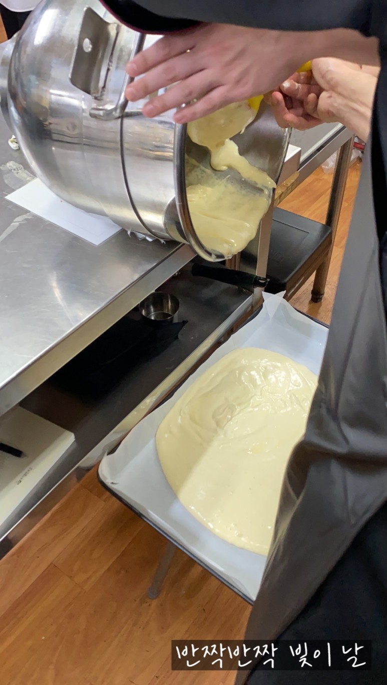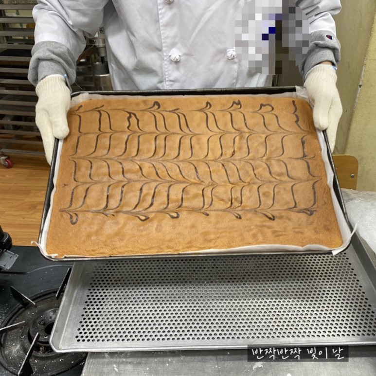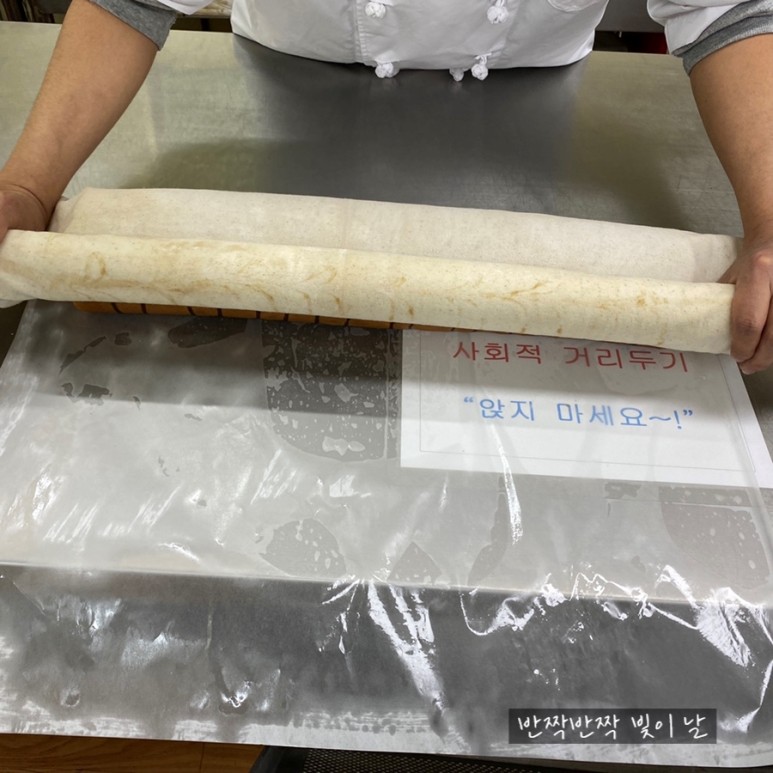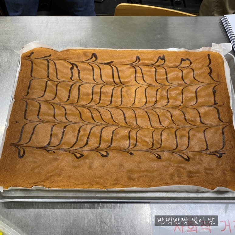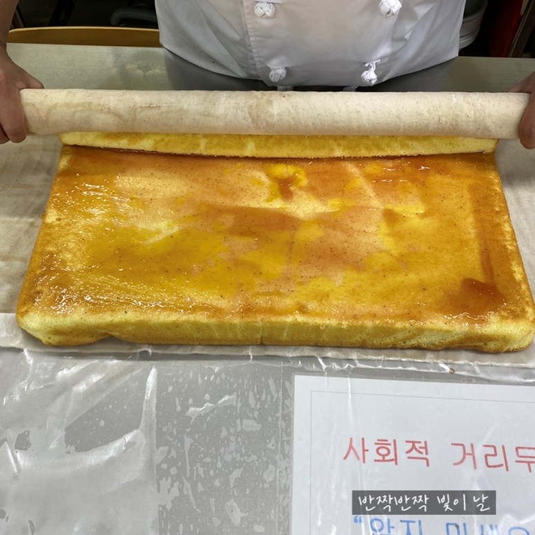 오늘 수업은 2인 1조로 진행되었는데 한 사람이 처음부터 끝까지 진행하고 나머지 사람이 그 과정을 지켜보는 과정에서 진행했어요.여태까지 수업한 제과 수업 중 가장 난이도가 있는 젤리 롤케이크… 비록 구겨본 적은 없지만 롤케익이 얼마나 깨지지 않고 깔끔하게 구겨지느냐가 이 시험의 관건이 될 것 같아요! 터지는 것은 역시 반죽의 비중이 가장 큰 역할을 하는 것 같고, 그 다음은 굽는 정도, 나머지는 말 때 한번에 적당한 힘으로 잘 구겨지는 것이 관건이지만… 이렇게 말해보면 전체 반죽의 비중이 가장 큰 역할을 하는 것 같고, 그 다음엔 말굽거나.. 실수거나.. 하고 말거나… 조가 싶기도 하고 모든게끔히거나 하는 것이 관건이지만.. 이렇게 말해버리고..다음 롤 시간에는 제가 전 과정을 혼자 하게 되는데 그때 더 상세하고 자세한 소감이 나올 거예요!그날을 기대하고 오늘은 이만… 졸졸졸…