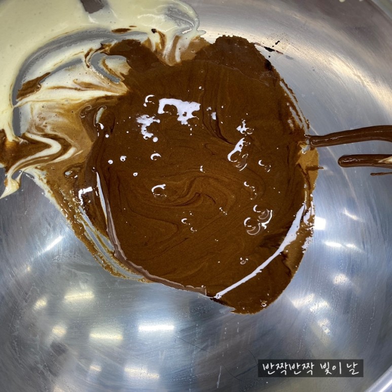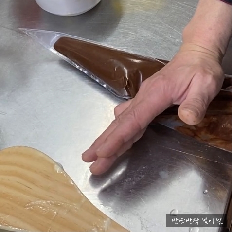 [모양 바꾸기] 1. 남긴 소량의 생바탕에 캐러멜 색소를 섞어 갈색으로 조절.