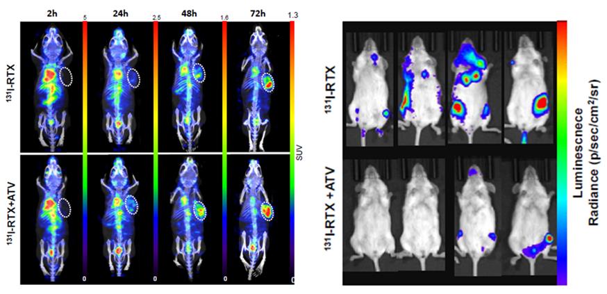 아토르바스타틴을 병용 투여한 쥐는 종양에 침투하는 방사성 요오드-리톡시맙이 단독 투여군보다 20% 이상 증가했고 종양 파괴 효과도 단독 투여했을 때보다 30% 이상 증가했습니다.