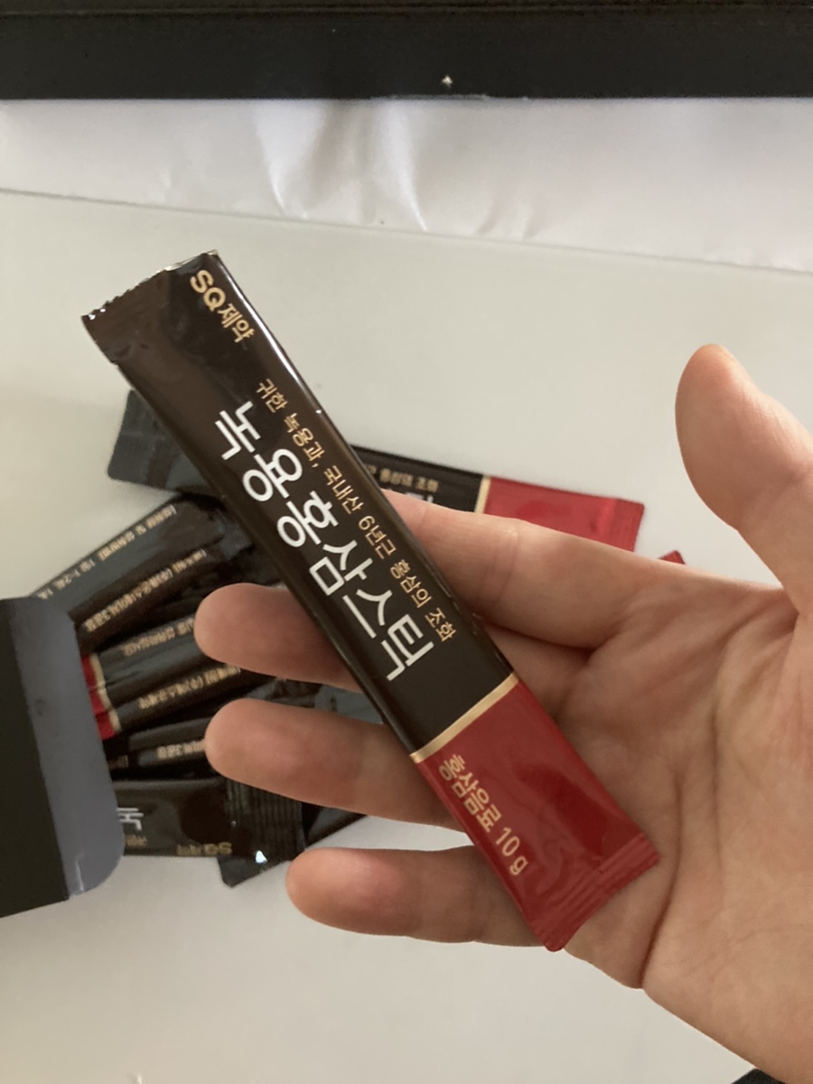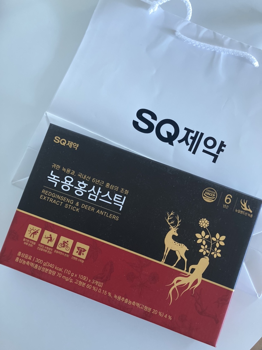 건강식품이기 때문에 허가를 받은 것인지 출처가 명확한지 정확해야 하므로 믿을 만한 곳을 선택하는 것이 당연하기 때문에 SQ제약에서 녹용홍삼스틱을 선택했습니다.