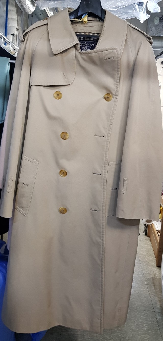 Previous image Nextimage 바바리 트렌치코트 세탁시 단추가 깨질 우려가 있으므로 단추캡을 반드시 씌우고 세탁을 진행하고 있습니다.^^ 손목 부분에 가죽이 붙은 벨트는 분리되면 반드시 분리하여 세탁에 들어갑니다:)버버리 더플코트 단추케어