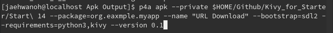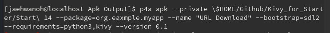 p4a apk -private$HOME/Github/Kivy_for_Starter/Start 14 -package=org.example.myapp -name “URL Download” -bootstrap=sdl2 —requirements