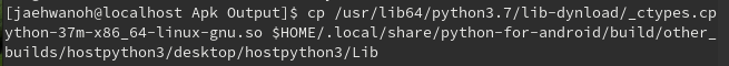 cp/usr/lib64/python3.7/lib-dynload/_ctypes.cpython-37m-x86_64-linux-gnu.so$HOME/.local/share/python-for-android/build/other_builds/hostopython3/deskt를 해줍니다.