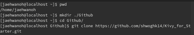 그리고 우리가 쓰는 Kivy코드를 gitclone이라고 불러와요git clone https://github.com/shwoghk14/Kivy_for_Starter.git