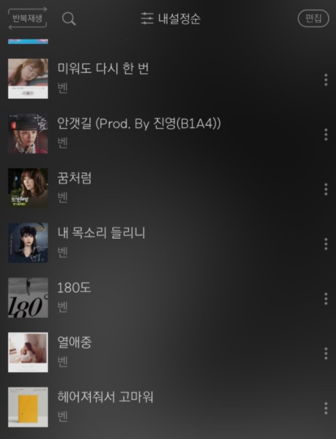 벤의 노래 중에는 꿈처럼이라는 노래도 좋아합니다.안개처럼 노래도 좋고!!~미워도 다시한번 사랑해요!!! 좋은노래가 많으니까 벤도 사랑해주세요!~