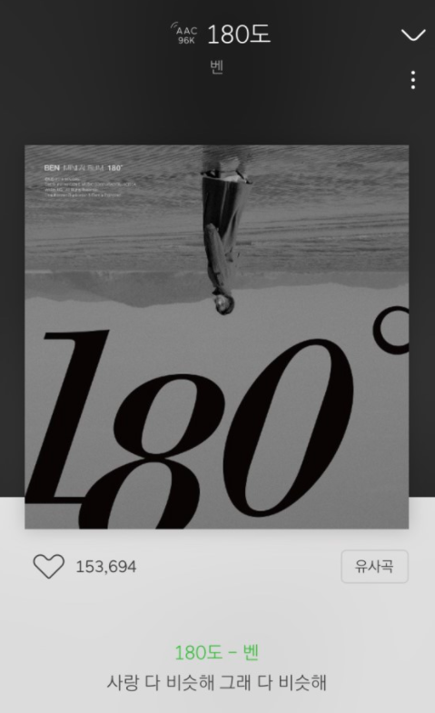 180도는 제가 가장 좋아하는 벤 노래 중 하나입니다.상대가 모든 행동, 표정, 말투가 180도로 변해버렸다.사랑이 일관적이기가 어려울 것 같은 노래다.닮았네!