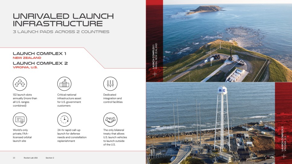 로켓랩은 지금까지 18번의 로켓 발사를 통해 104개의 인공위성을 궤도에 올렸습니다.(투자자의 프레젠테이션 이미지는 3개월 전 자료이며 로켓랩 홈페이지의 최신 자료는 104개로 되어 있습니다.)