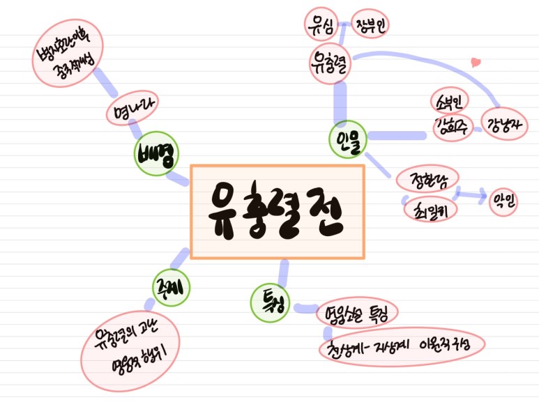 인물관계도는 제대로 정리하면 훨씬 작품을 이해하는 게 좋죠.특히 고전 소설에서는 인물이 관직이나 성만으로 불리기도 합니다.그래서 등장인물을 잘 파악해야 합니다.