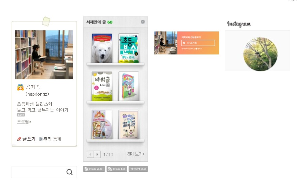 저는 블로그 메인 프롤로그 화면에 위젯을 올리는 것을 별로 좋아하지 않았는데, 인플루언서홈과 주로 이용하는 체험단 사이트, 그리고 운영하지는 않지만 인스타그램 링크를 하나 걸어 놓으면 그래도 뭔가 활동적으로 SNS를 하고 있다는 느낌이 들었어요.확실히 좀 더 관리하는 느낌이 들어요