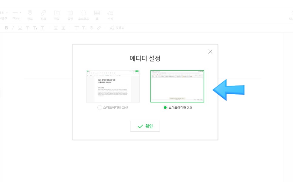 먼저 HTML을 알기 위해서는 블로그 쓰기를 스마트 에디터 ONE이 아닌 스마트 에디터 2.0이 있어야 됩니다.따라서 글쓰기 모드로 들어가셔서 설정에서 스마트 에디터 2.0으로 설정을 변경하시면 됩니다.쓰기 모드로 변경해도 되지만 블로그 관리에서 설정을 변경하셔도 됩니다.