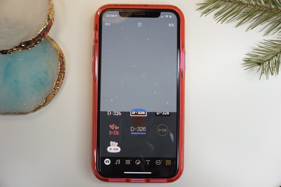 두 번째 누르면 아이콘이 몇 개 나와 카메라, 음악, 문자, 이모티콘, 달력 등 무엇을 먼저 꾸밀지 고민했다. 새해니까 신나는 노래로 해놔도 좋을 것 같았다. 예비 엄마라면 출산일 기록, 커플이라면 달콤한 100일, 1주년을 디데이로 만들어 놓아도 좋다. 나중에 보면 못알아보고 찾을 수 있어.