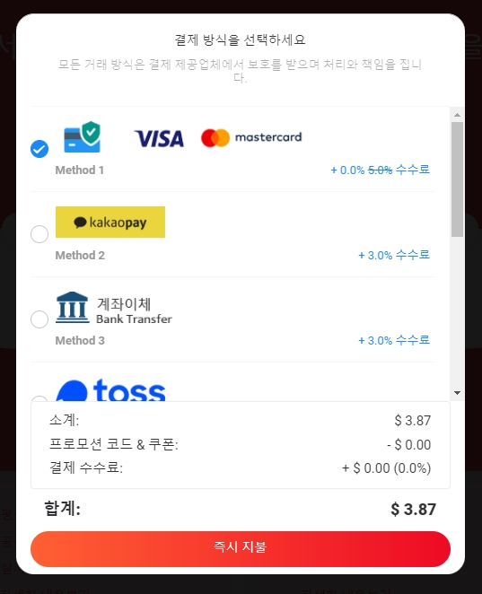 이거는 카카오톡 결제 위윈도의 모습입니다뭐… 원하는 방식으로 결제하세요