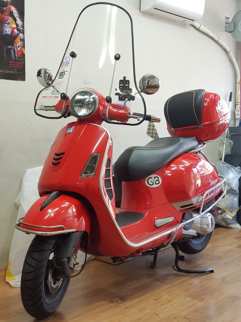 정품 베스파 숏스크린으로 장착을 원하셔서 장착하였습니다. 상처가 나면 안 되니까 살짝 내려놓은 다음에 한 방 한 방 사진 찍어드릴게요.다음주분이 안계셔서 이렇게 조심히 착용했어요~~~ 생색내요~