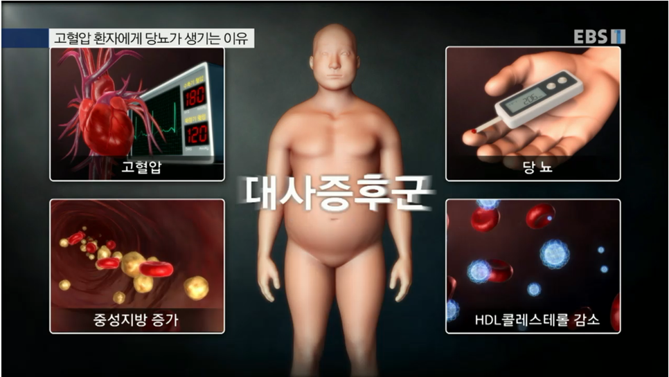 고혈압이나 혈당 장애, 이상 지질 혈증, 복부 비만의 4가지를 대사증후군이라고 부릅니다.