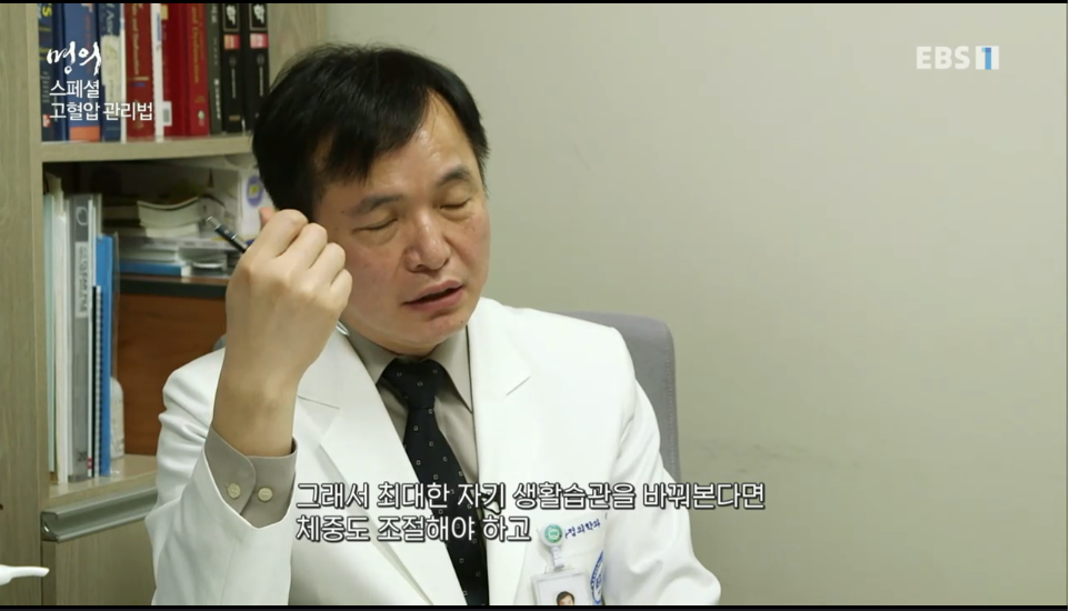 고혈압 관리를 위해서는 우선 체중 조절을 해야 합니다.체중을 10kg 빼면 혈압도 10mmHg정도 내려갑니다.