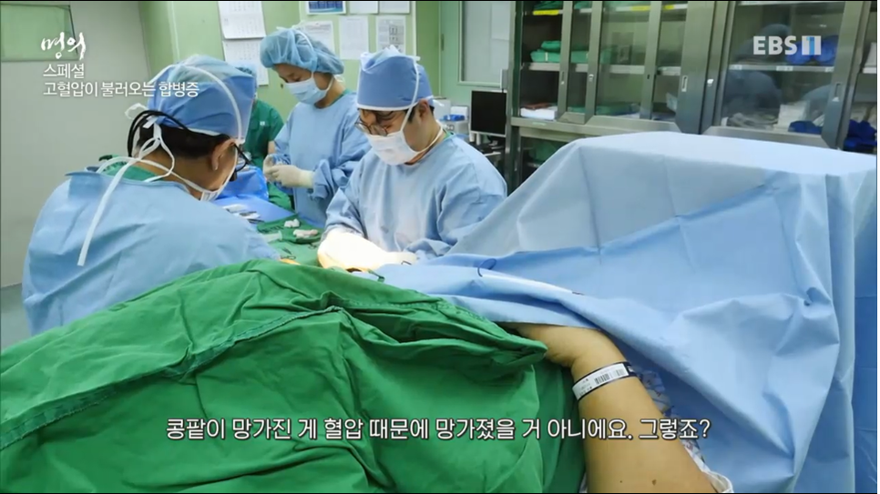 고혈압으로 인해서 동맥경화가 생겼어요.
