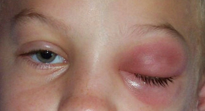 안와주위염 안와주위염은 염증이 안와격막 전방에 한정되어 있어 전체 안와내 합병증의 80% 이상을 차지하고 있습니다.위의 사진과 같이 안검의 종창, 홍반이 나타납니다.