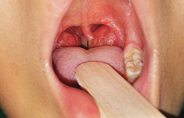편도선은 목 뒤에 있는 두 개의 작은 연조직 덩어리(양쪽에 하나씩)로 입을 벌리고 혀를 내밀면 거울로 편도선을 볼 수 있어 편도선에 감염되어 염증이 생겼을 때 발생하는 것입니다.