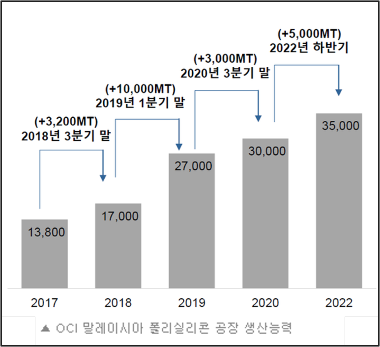 이에 따라 올해 폴리실리콘 물량 공급을 확대할 목적으로 공격적인 증설을 예고하고, 현재의 2배에 달하는 최대 6만 톤까지 폴리실리콘 생산량을 확대할 계획입니다.