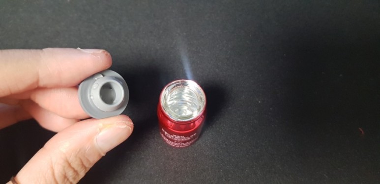 정말 많은 타액이 있어요! 잘 보셔야 돼요!롤러를 쓱쓱 문지르면~ 앰플이 나오고!침 콕콕! 침 콕콕! 그 사이에 앰플이 쏙 들어가요.